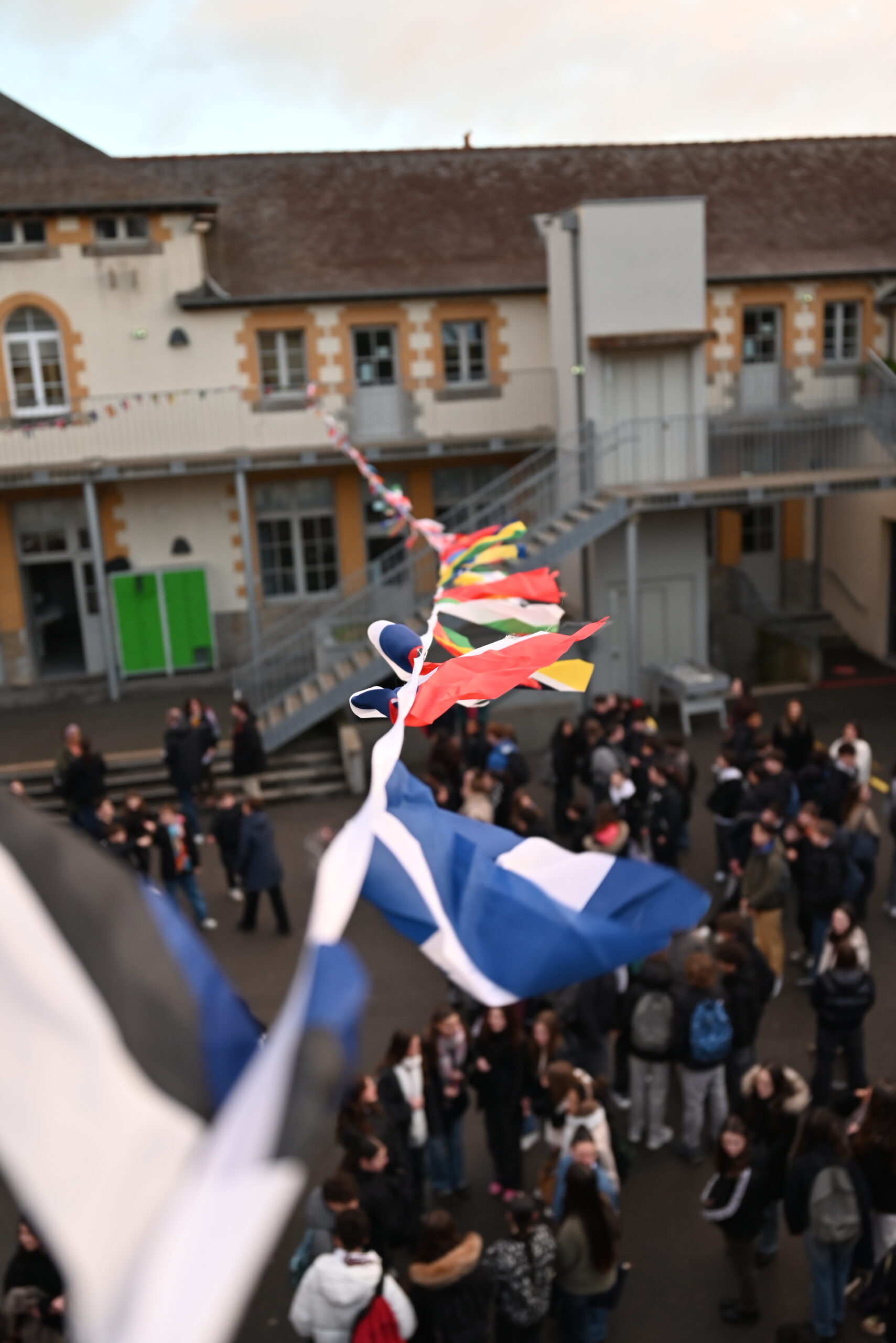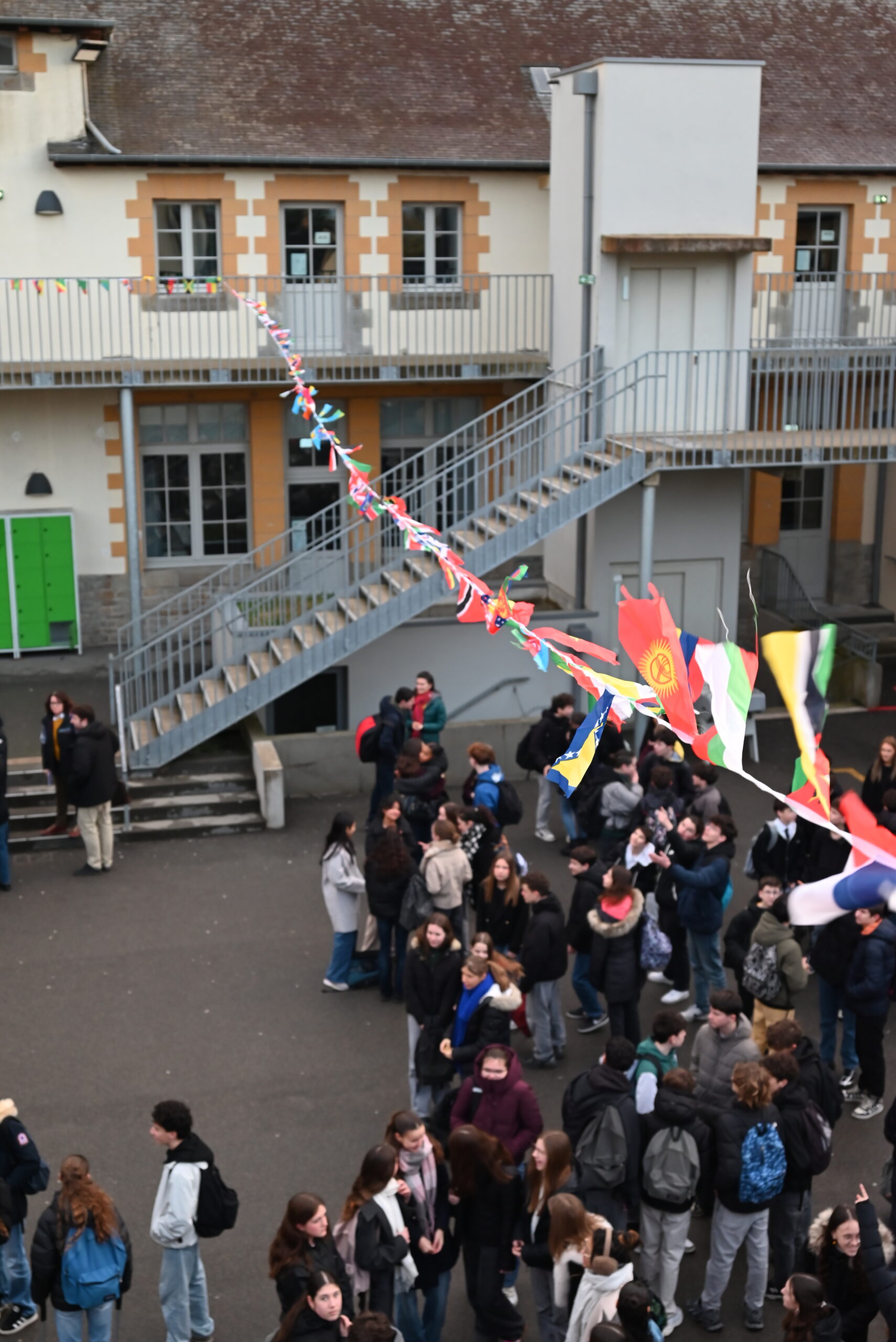 La journée s’est clôturée par un rassemblement final à 16h30, marquant la fin de cette parenthèse internationale réussie. Une clôture mémorable au rythme de « Saca la mano » d’Eva Ayllon, entraînant élèves et volontaires dans la danse et dirigée par nos deux élèves péruviennes, Valeria et Mishelle.